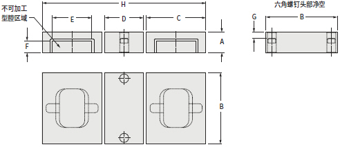 转换为单工位使用可加工钳口示意图(图示为标准型)HDLM4-CONVKIT & HDLM6-CONVKIT